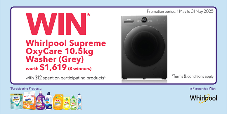 • Multiple entries are allowed, but each entry must include a new, official receipt showing a valid receipt number with a minimum S$12 purchase of participating products. Duplicated receipts will be disqualified.